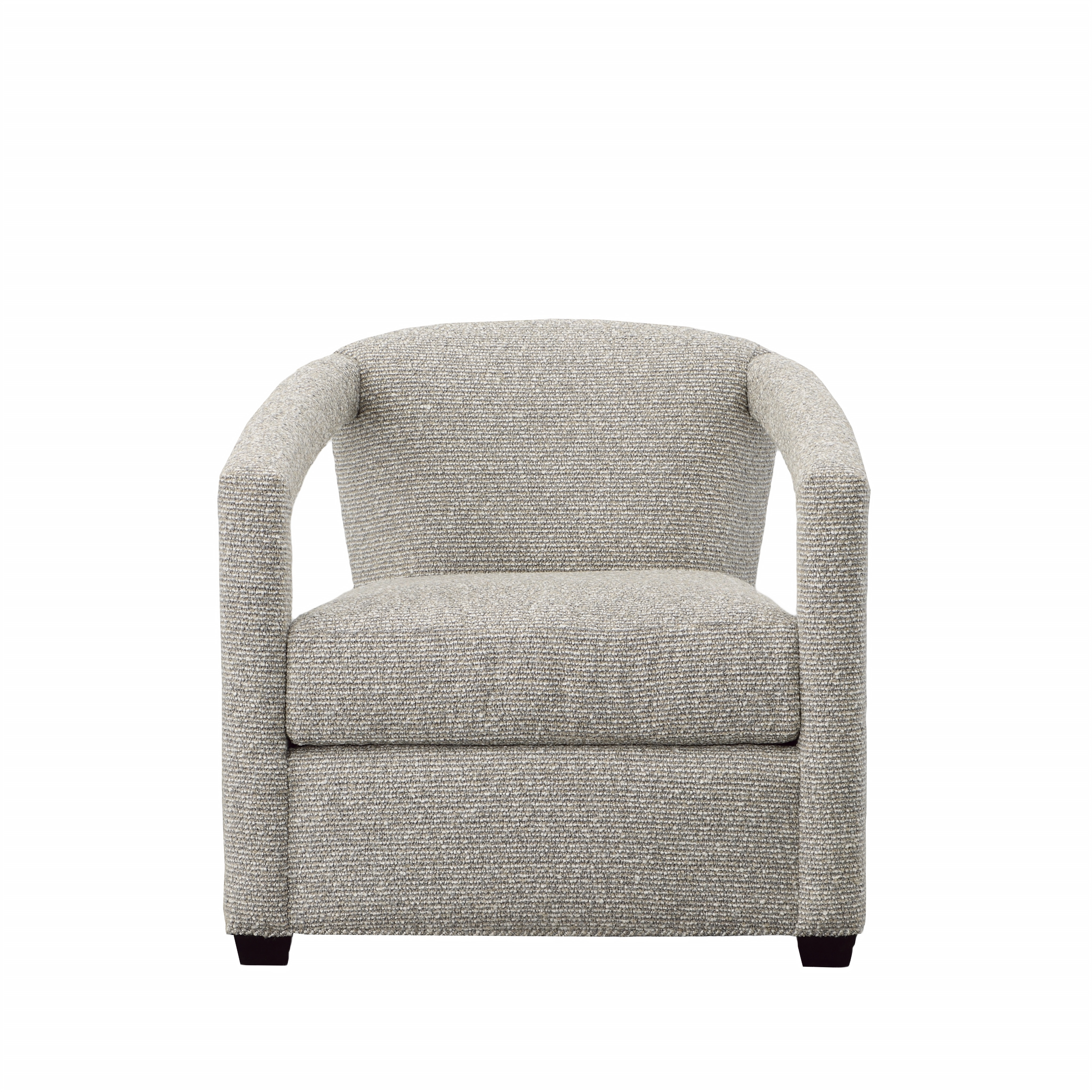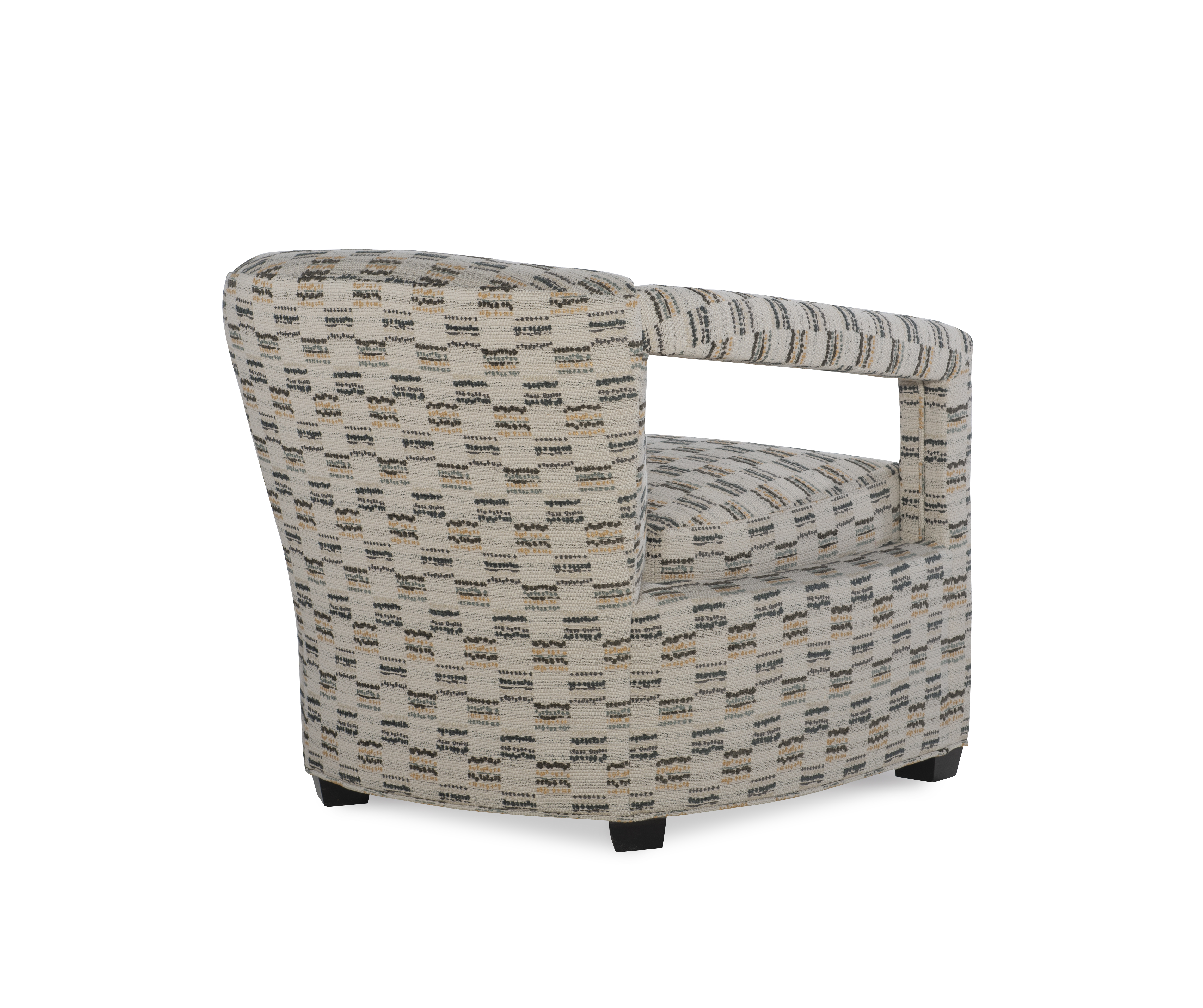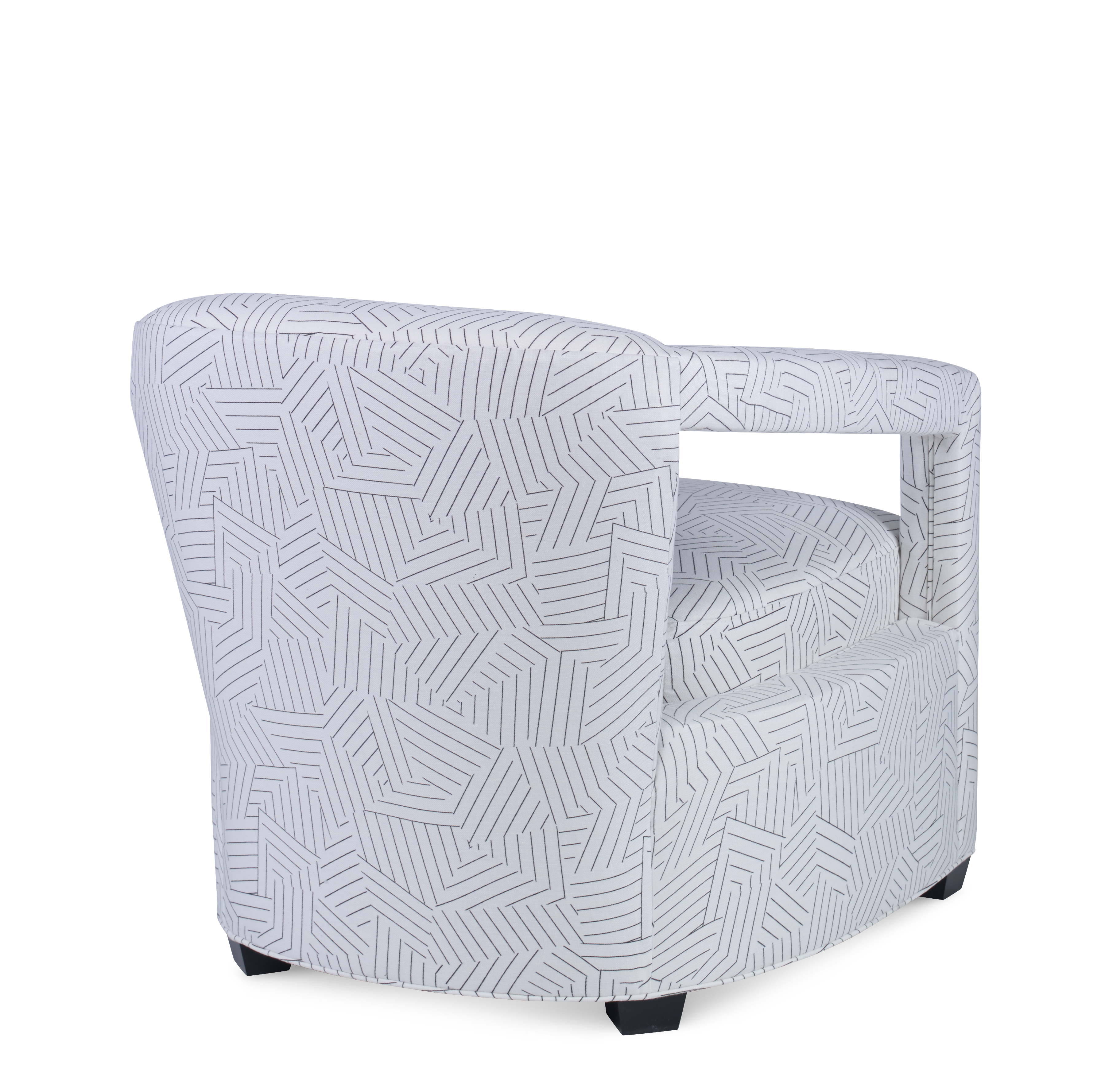 A transitional barrel back chair, the Calla has a beautiful open fully upholstered arm detail making it a great accent chair. Available as a stationary or swivel chair, the low profile allows it to float in a room.