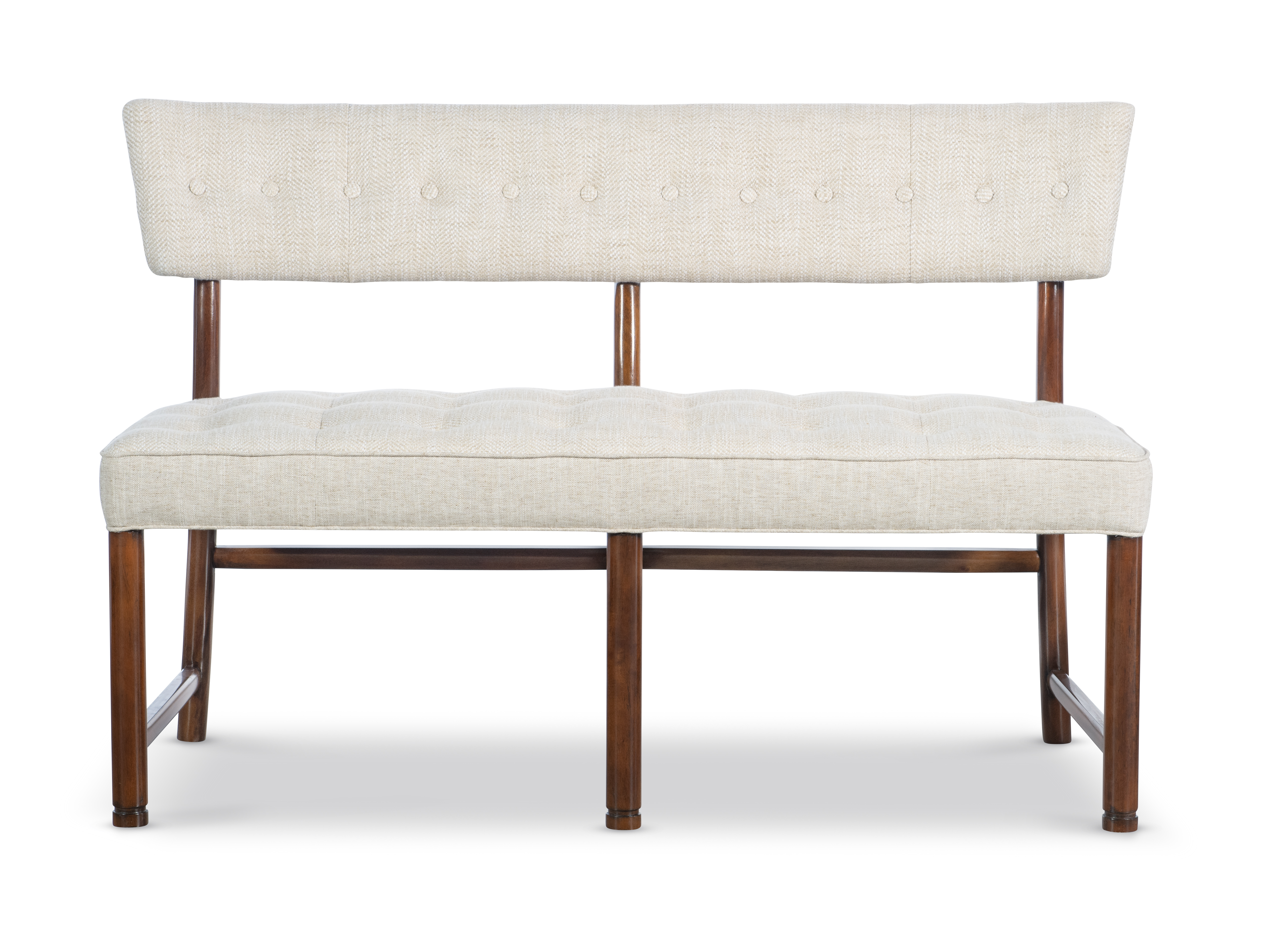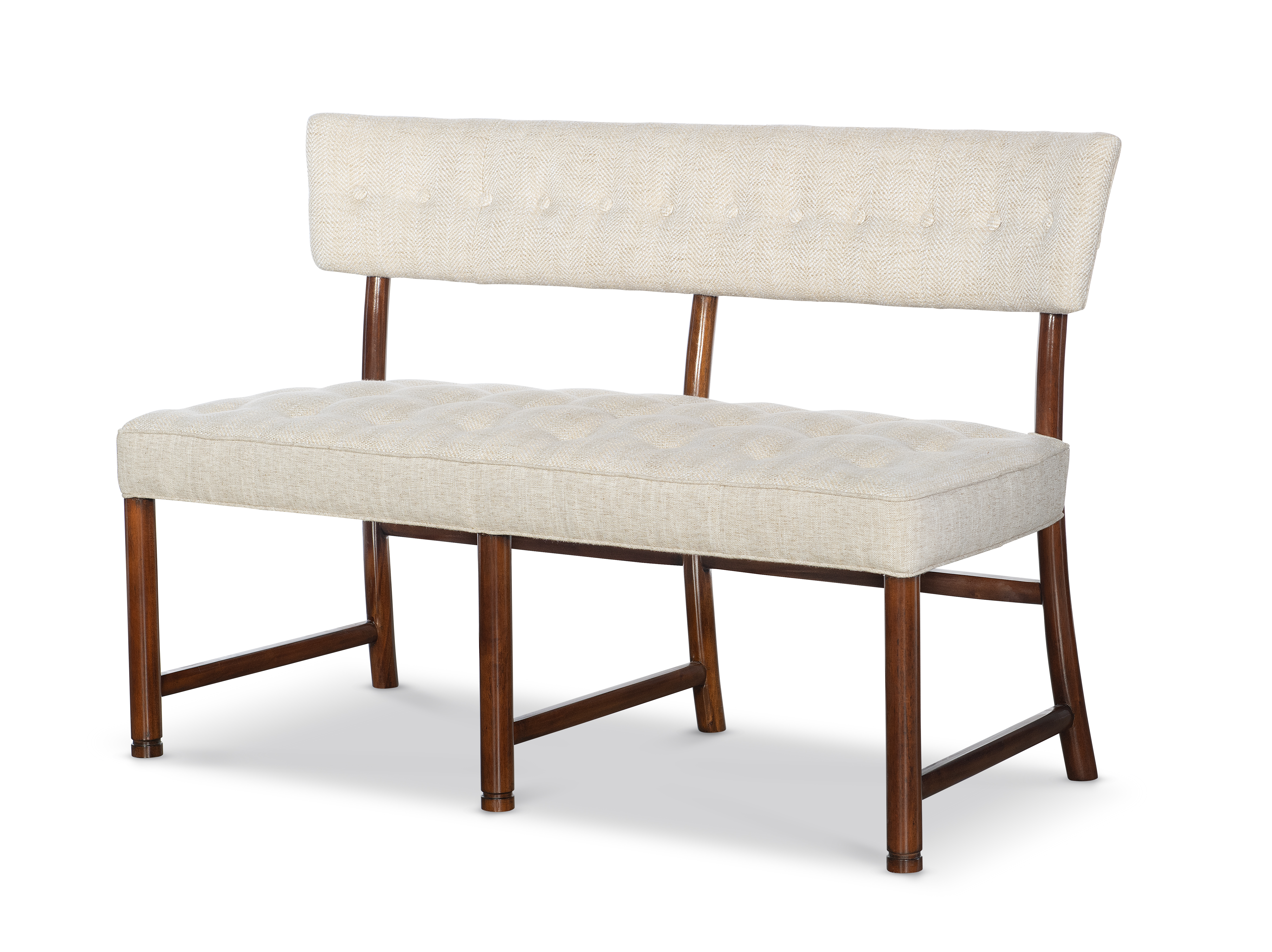"The new Dabney Settee comes so naturally from my Dabney Chair. The demi-lune open back buttoned form comes from the era of Bud Franke and Billy Haines. That kind of 1940’s Hollywood glamour is also perfect as a settee and can stand on its own or offers a fantastic new way to select a set of chairs and settee for a wonderful dining table group. " -Thomas O'Brien