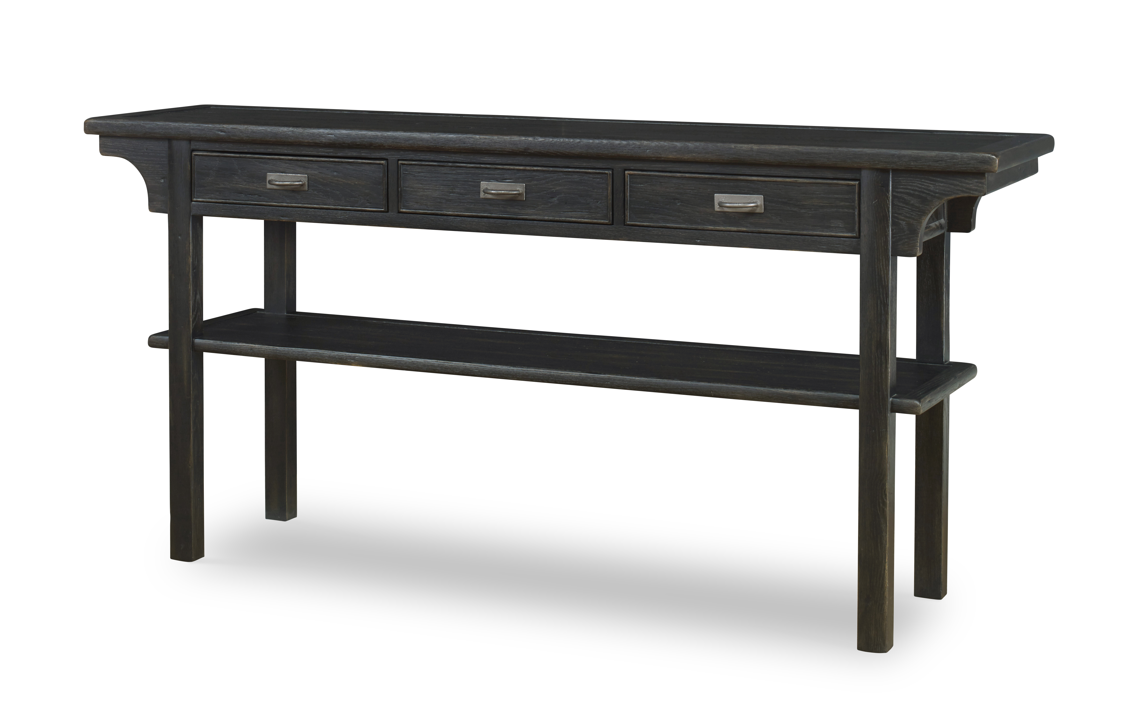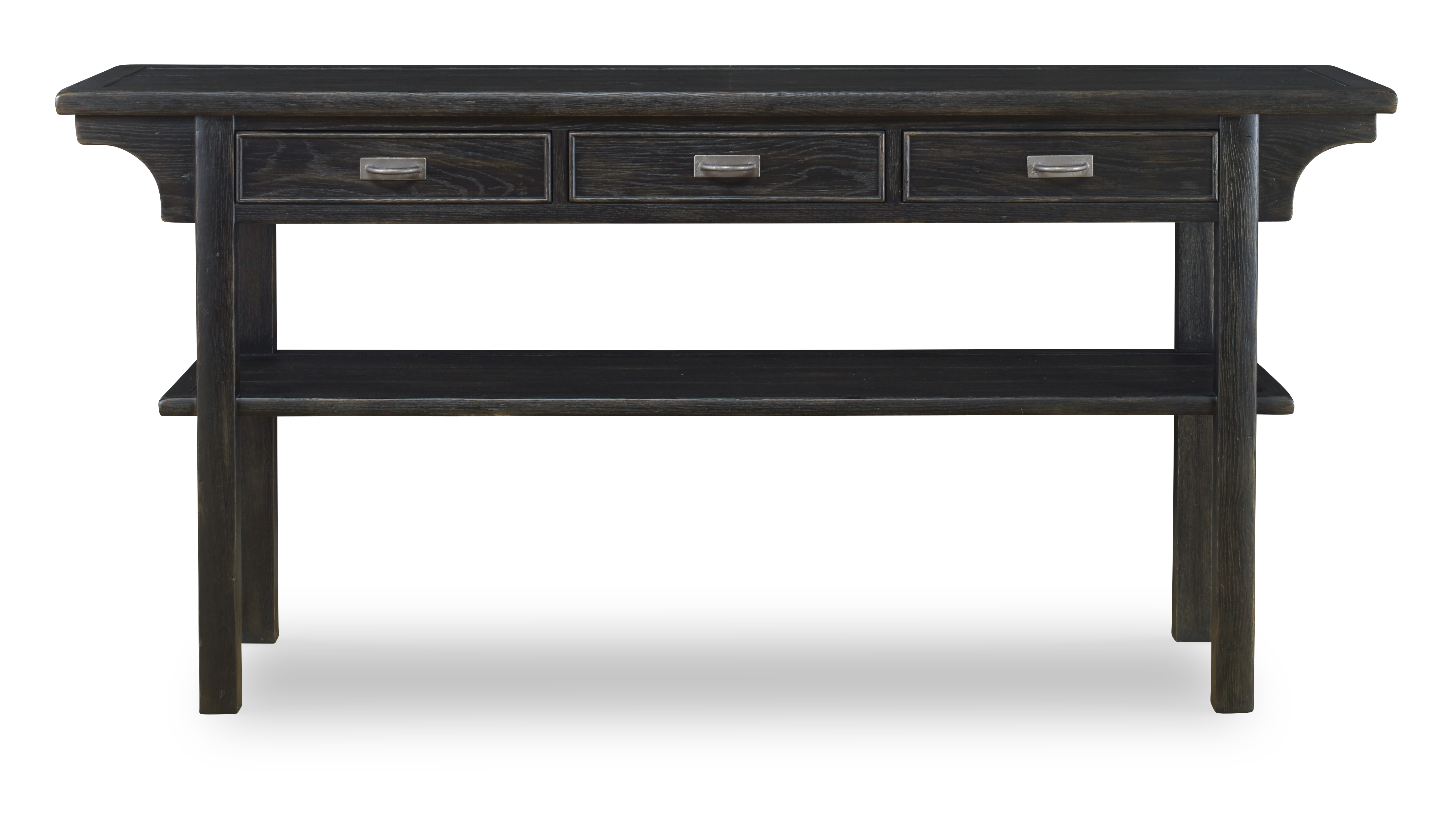 B2B Black Rustic Three soft-close drawers with open shelf below. Textured pewter hardware Tip restraint included |