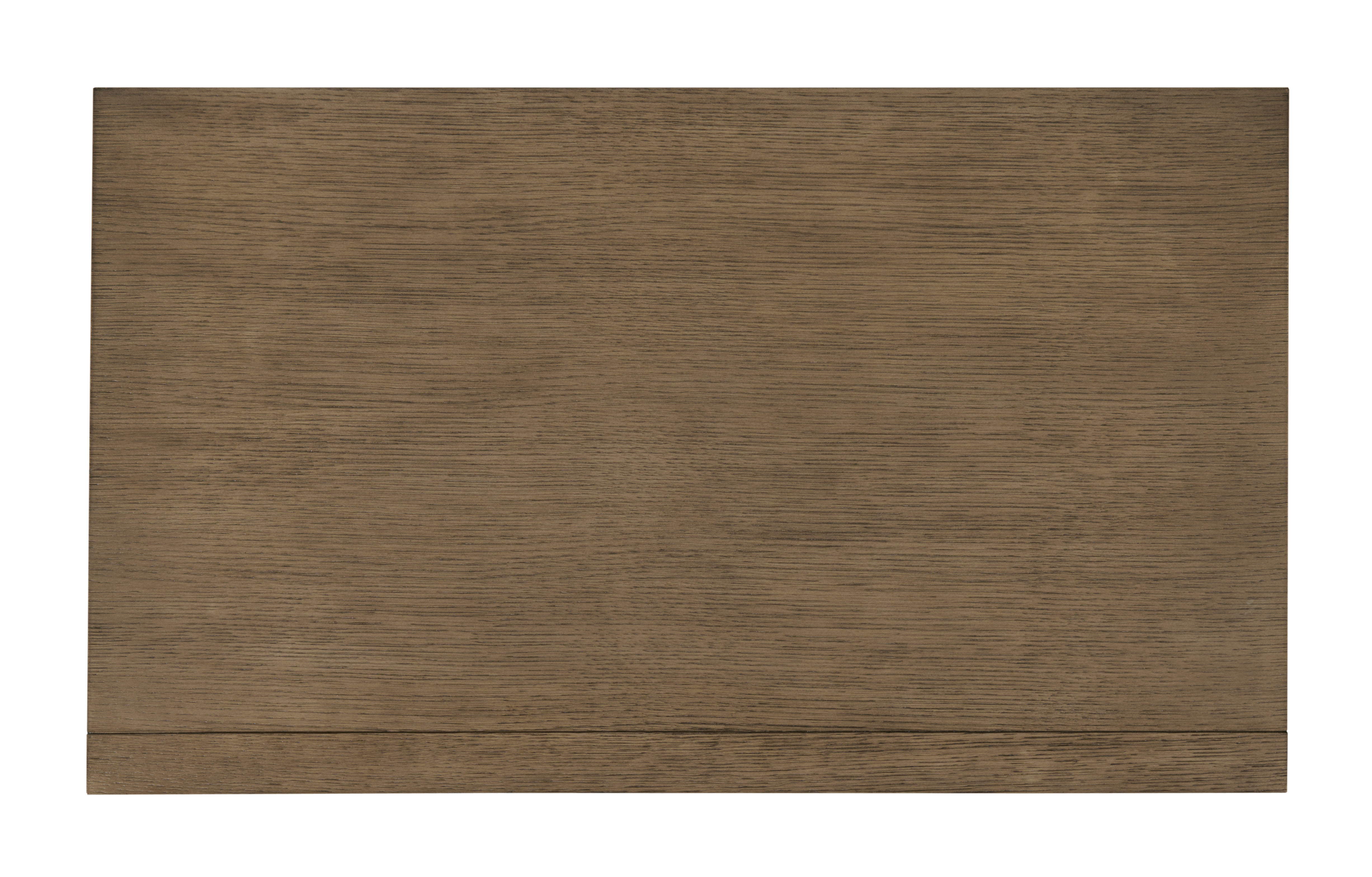 NOTE: AVAILABLE ONLY AS SHOWN Camino Grey finish on Oak solids and veneer with Satin Gold finish metal trim. Two drawers with Satin Gold finish hardware |