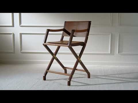 The Sturges Counter Stool is a take on a classic campaign design. Rich brown leather wraps the arms, back and seat. Soft antique brass accents on the stretchers and seat and back.