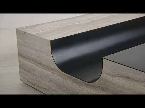 A refined fusion of cool stone and warm metal, the Contorno Coffee Table features silver-toned travertine paired with dark bronze accents, delivering a sophisticated contrast that elevates modern and transitional interiors. A statement piece with a minimalist, organic silhouette and low-profile.
