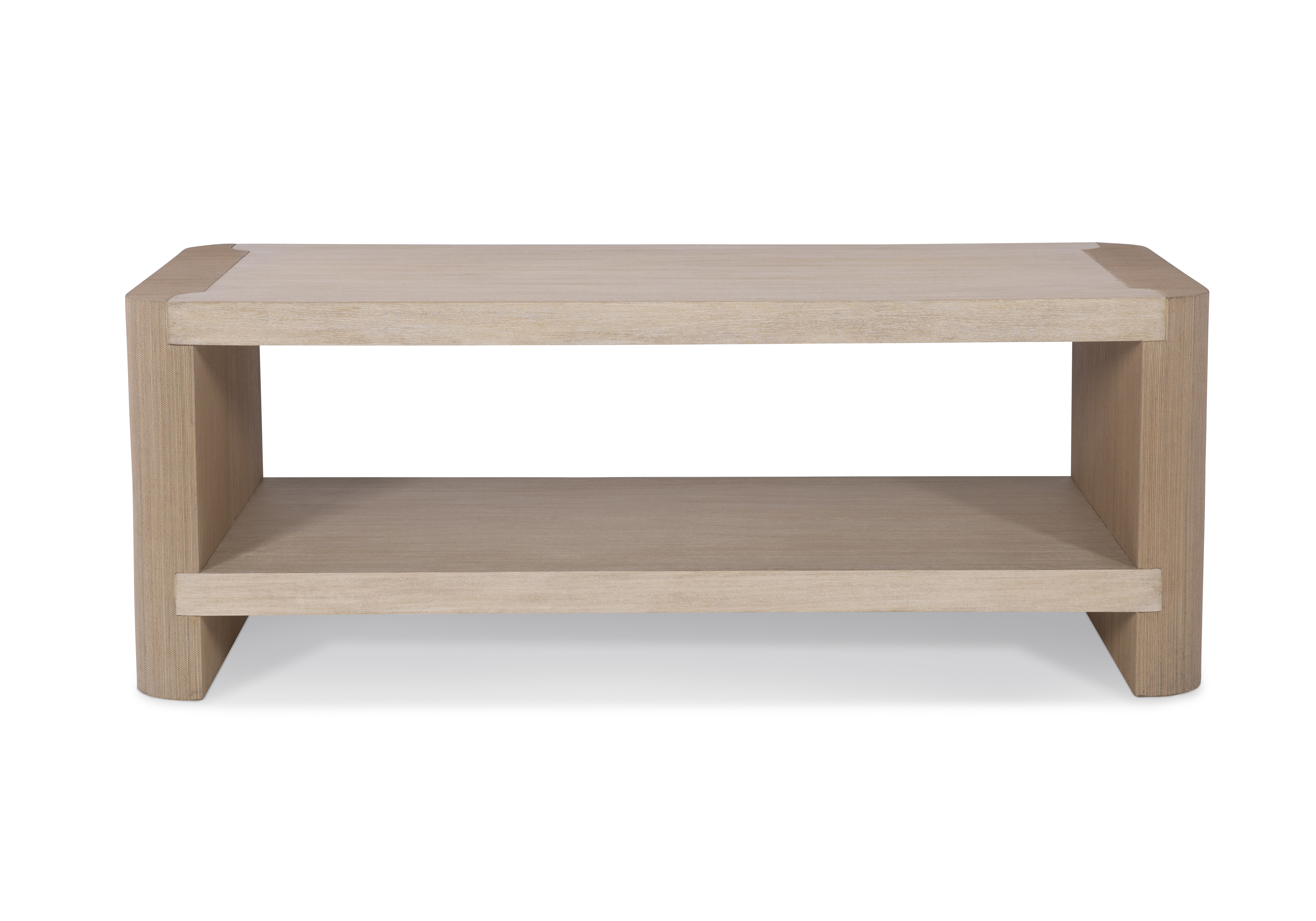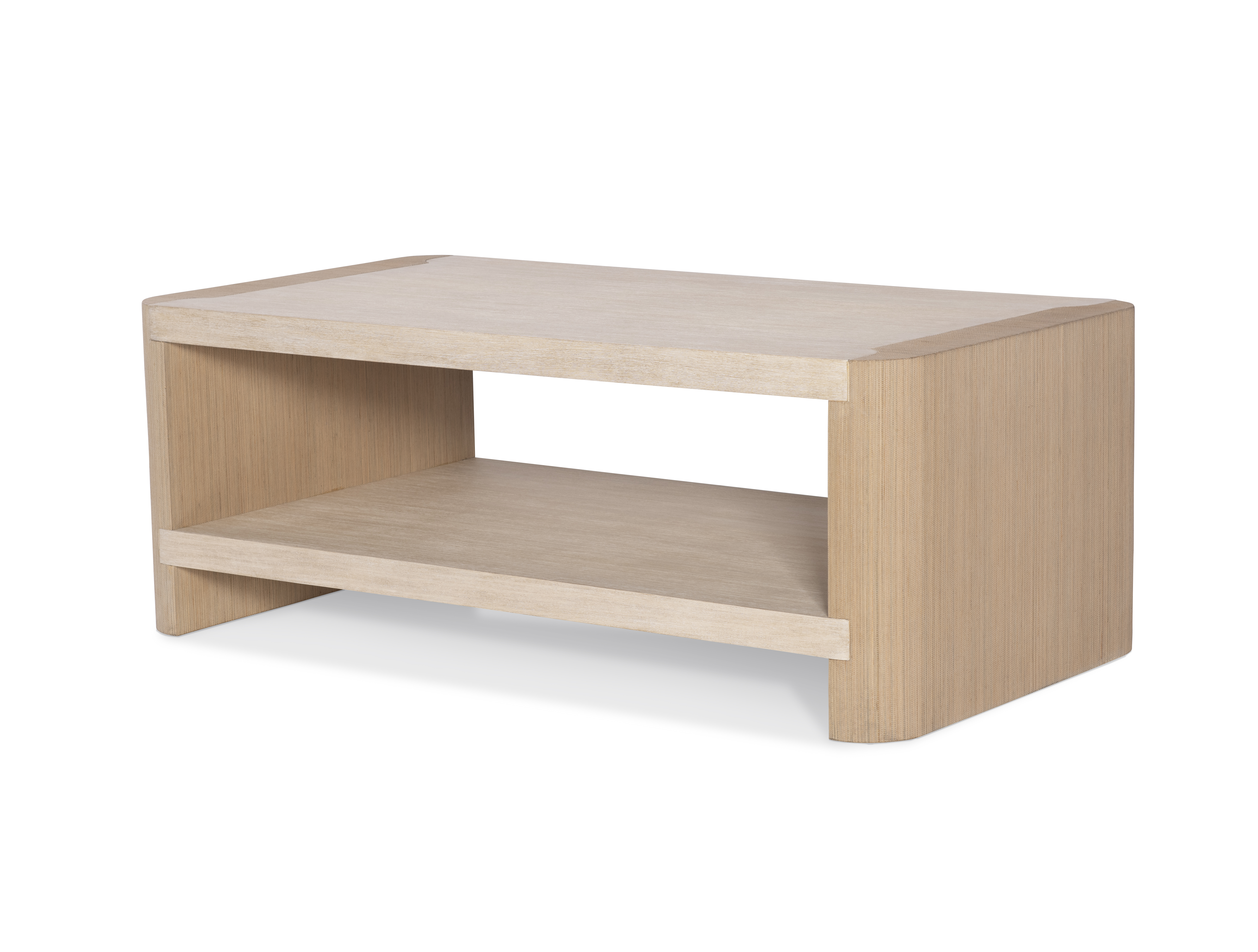 **Limited Quantities Available** A sand-blasted light toned top and shelf with natural cane wrapped sides |