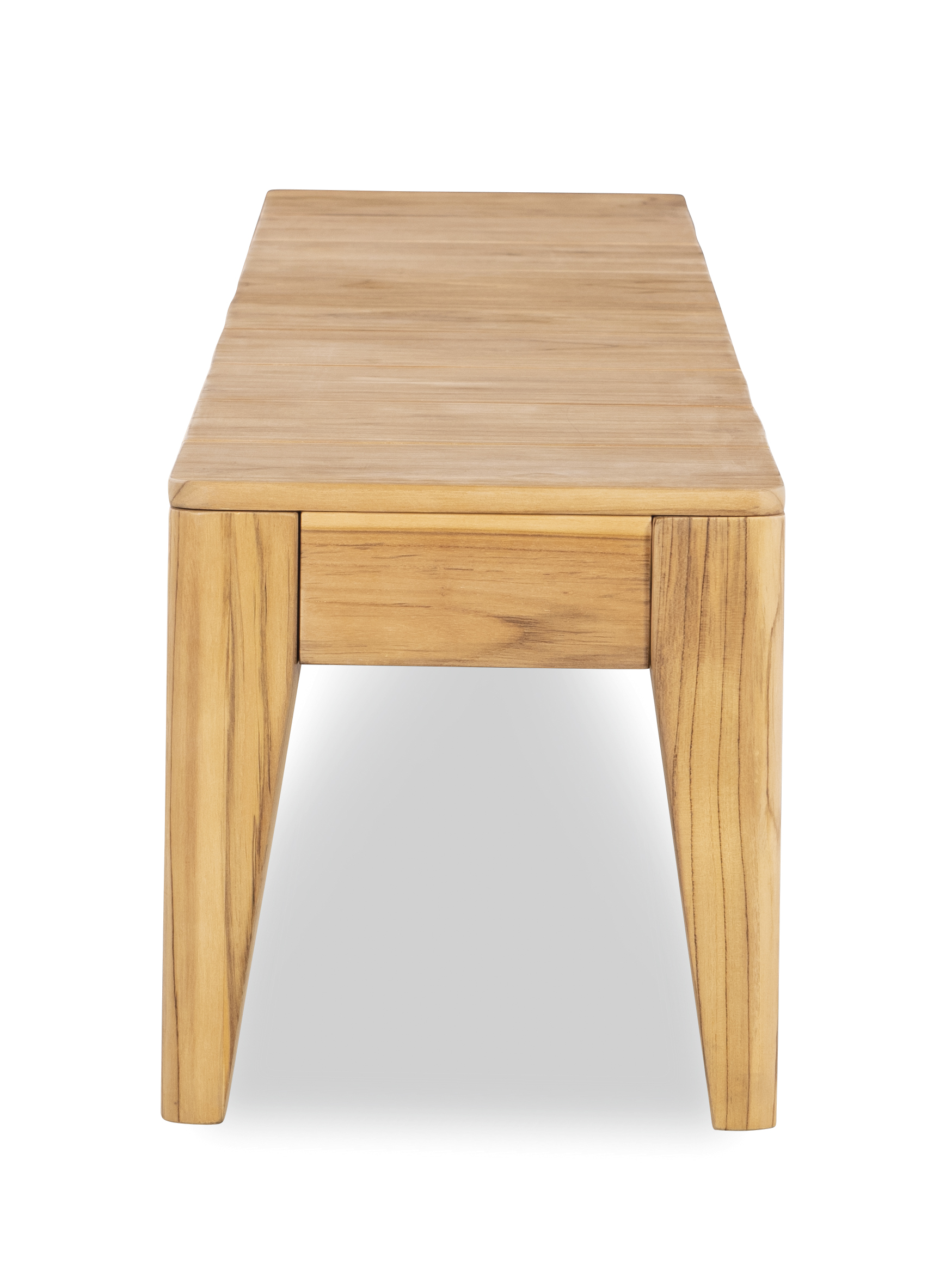 (View As Shown Info) Some color variation in photos of our furniture finishes and fabrics is possible due to the lighting and different color resolution on computer monitors. D8A-3159-V1 - Drift Outdoor Teak Bench Outdoor Complements W: 80.25 in D: 11.75 in H: 12.75 in Add Item to Wishlist Product Details Material Teak Solids Dimensions Dealer Locator