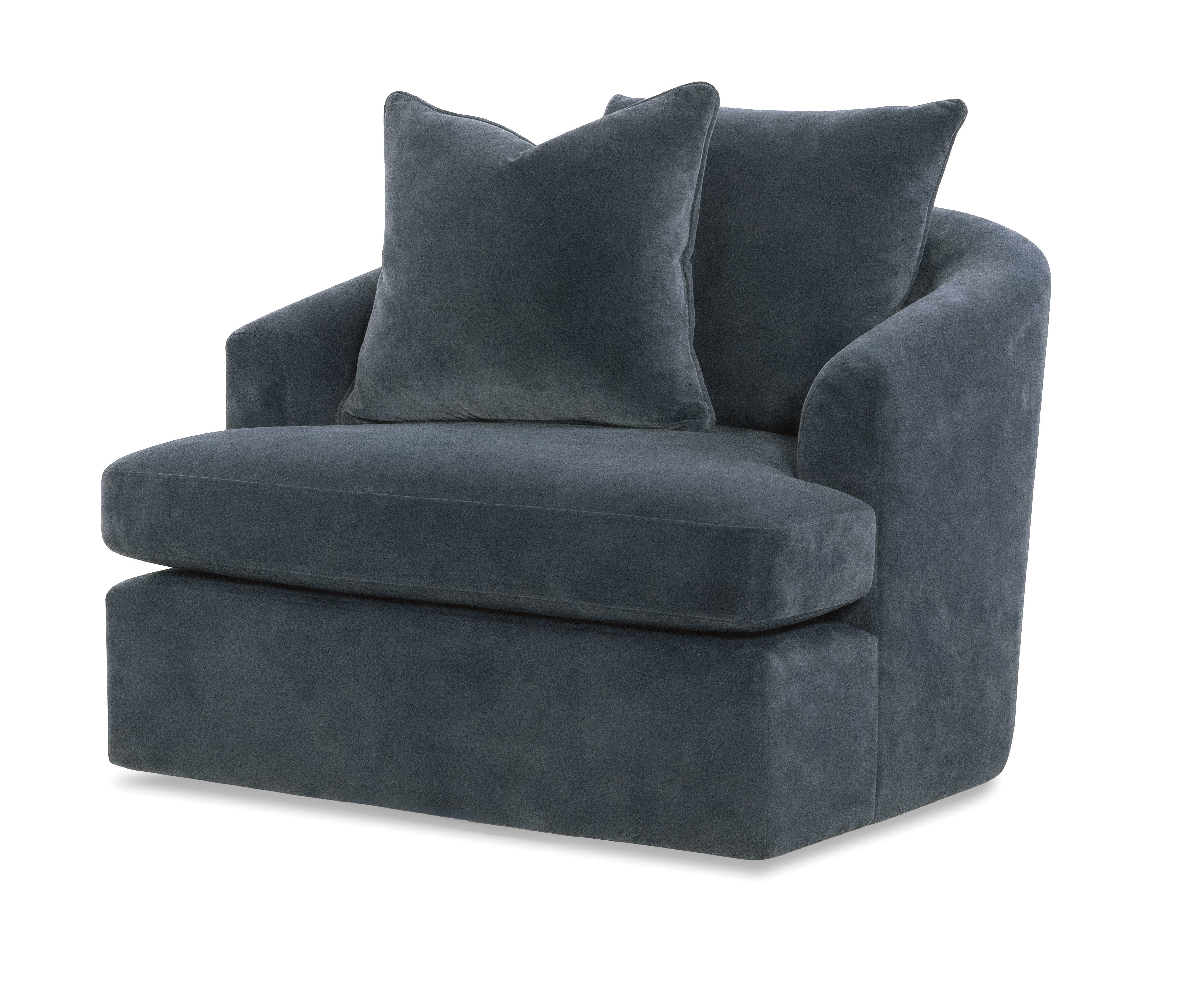 The Tatum Chair offers a larger 'chair and a half' scale with a clean barrel back shape making it perfect for transitional to contemporary styling. Part of our Custom Source product, the Tatum can be customized by changing the arm, back and base options. It is ia available as a stationary chair and a swivel. A matching ottoman is also available.