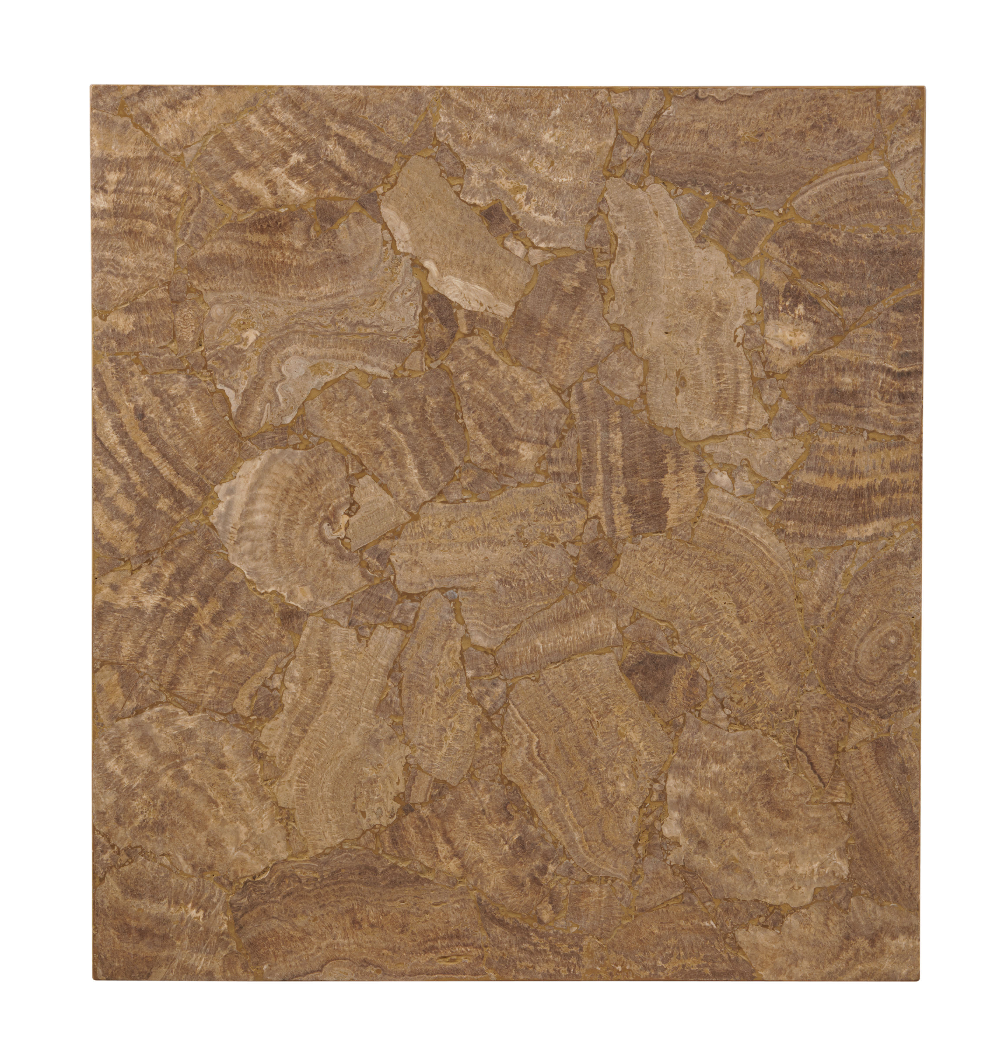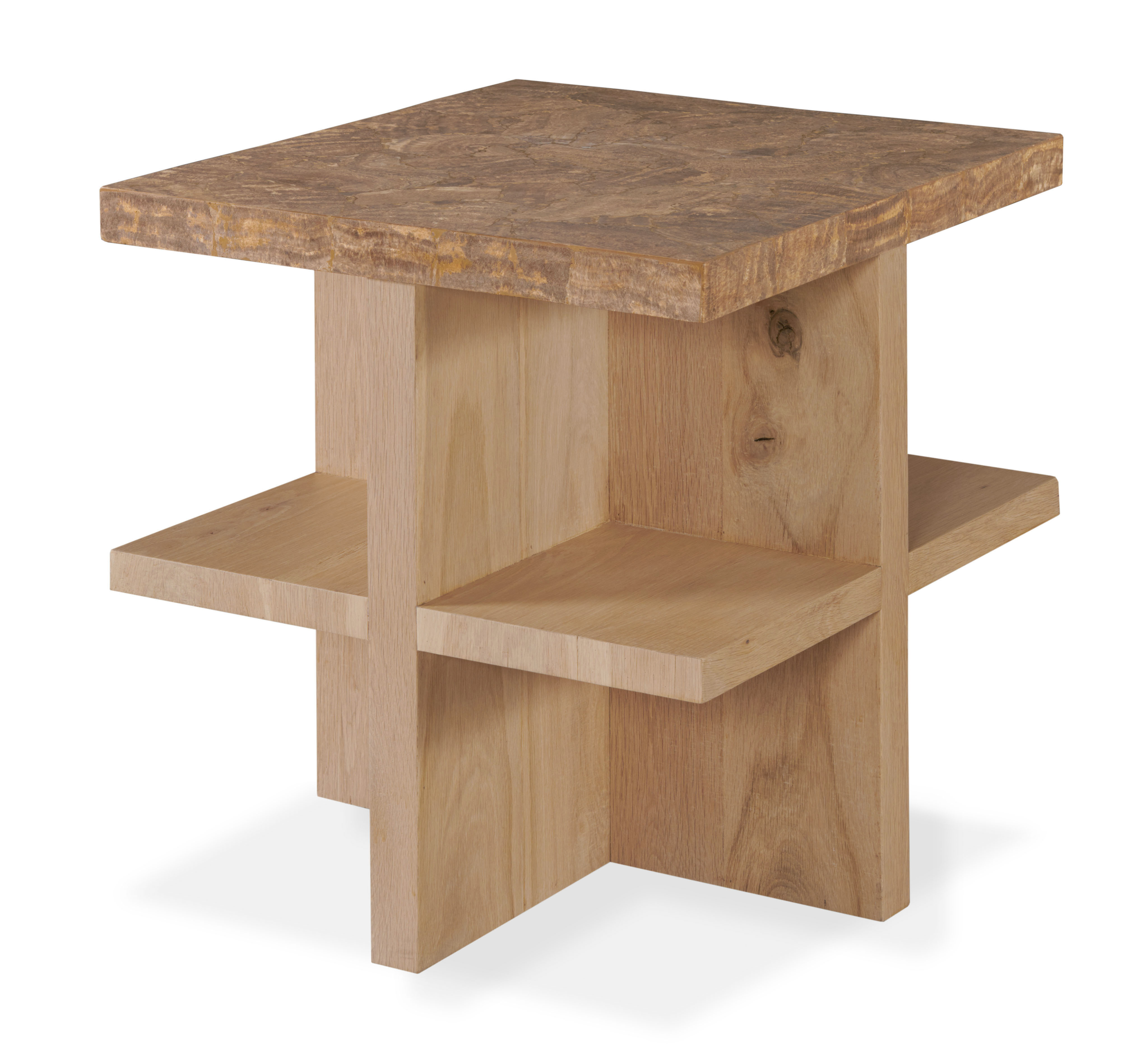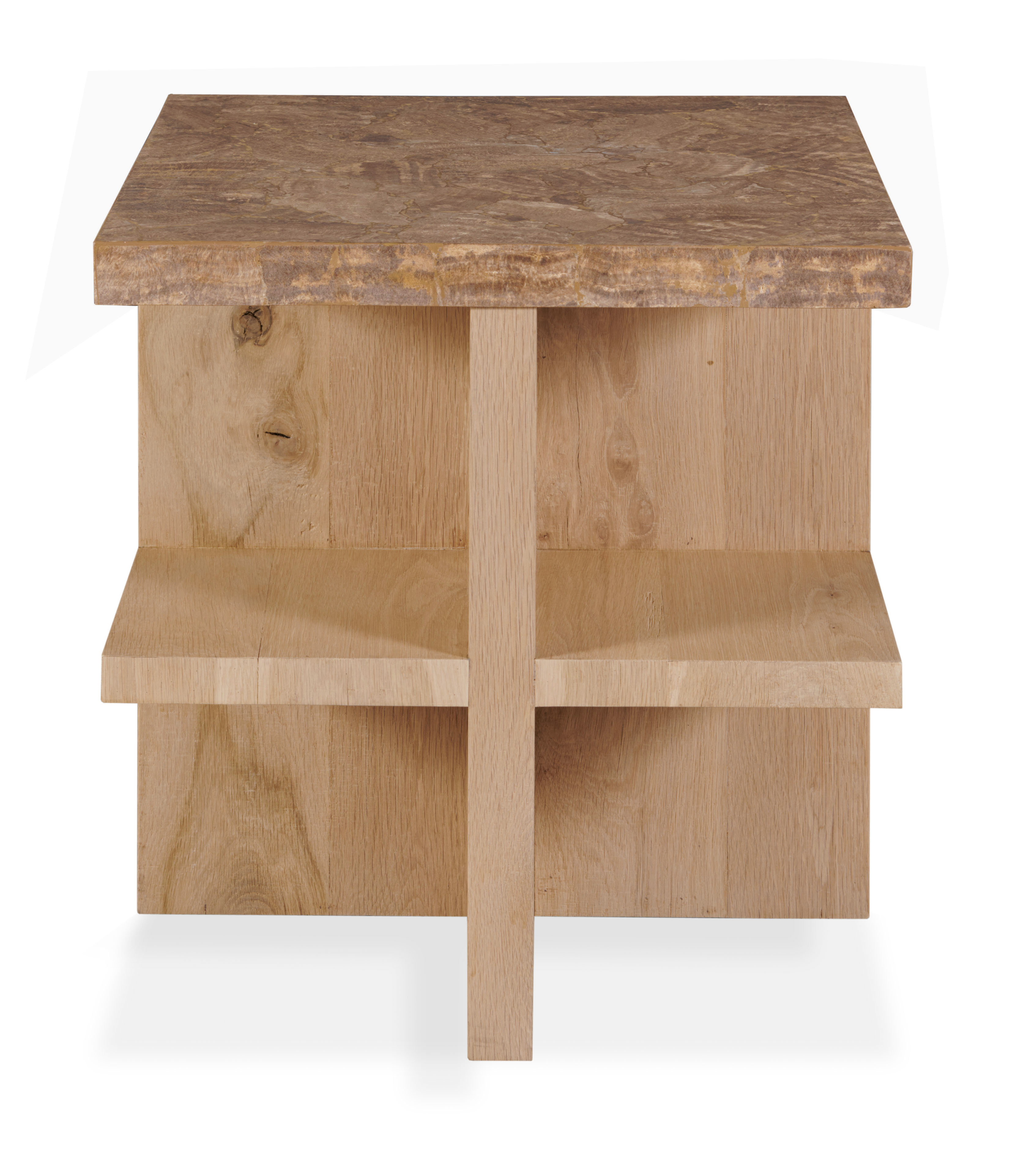 **Limited Quantities Available** Oak solids and placage finished in a light, natural stain with travertine stone top. Designed by Pride Sasser |