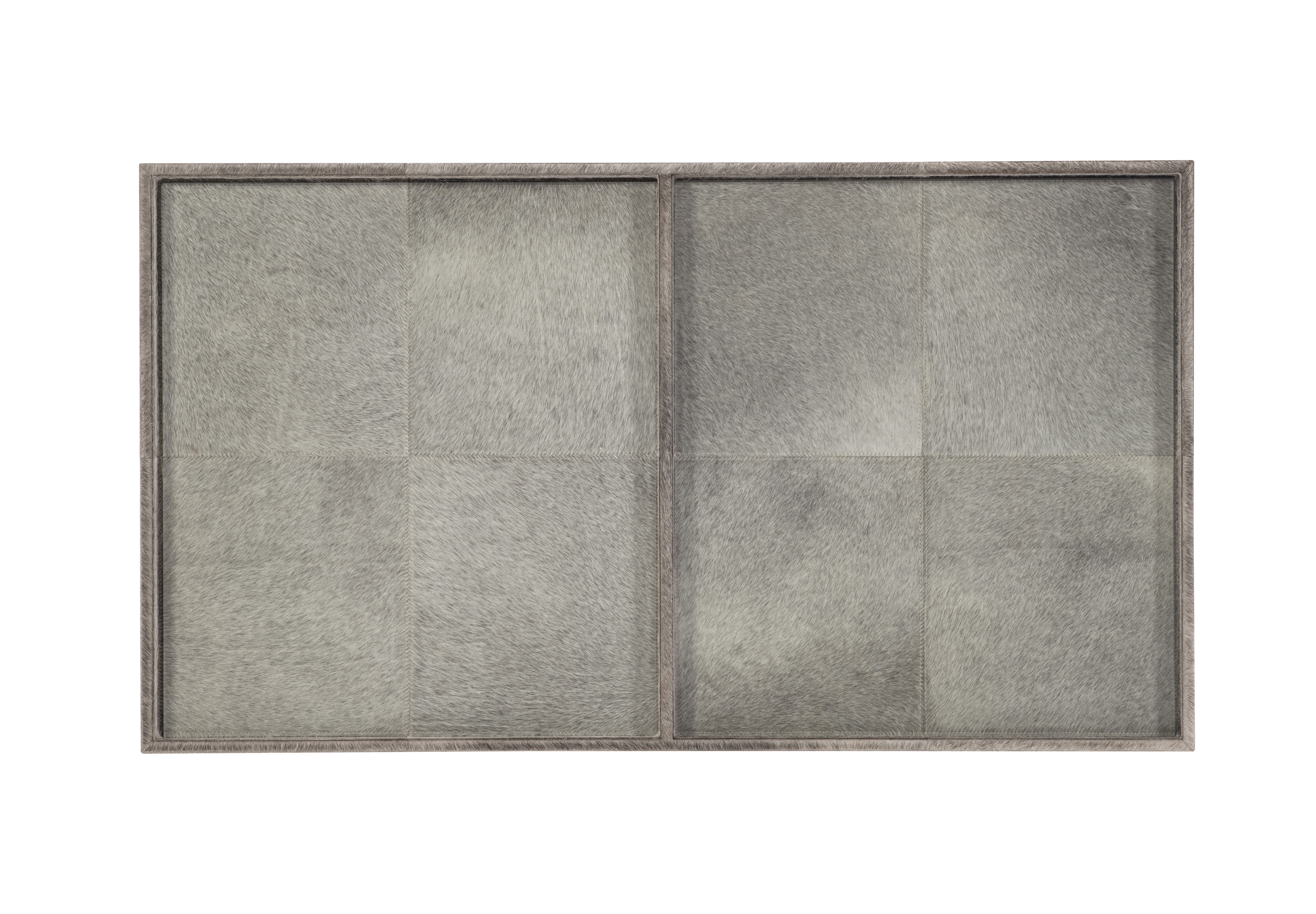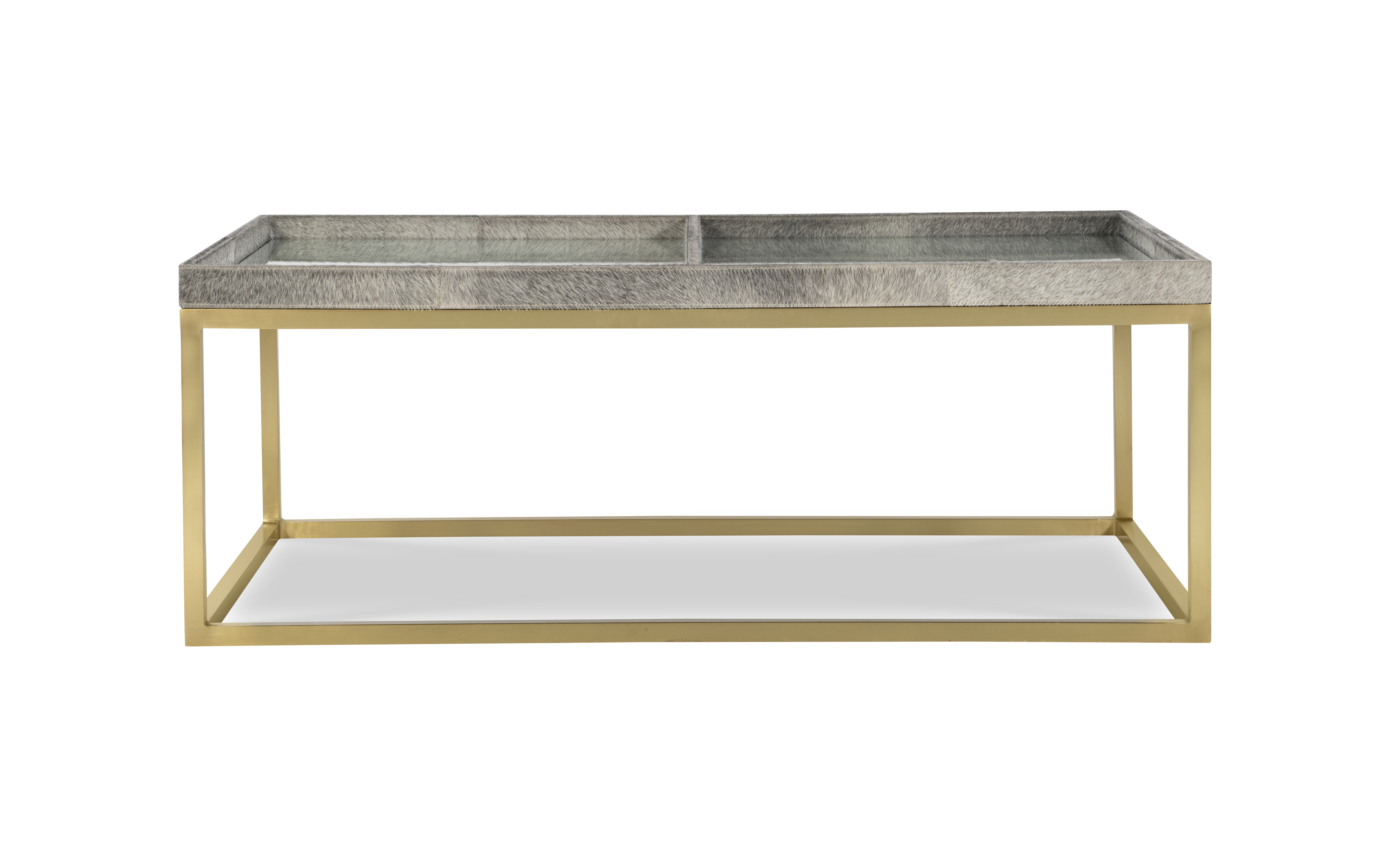 (View As Shown Info) Some color variation in photos of our furniture finishes and fabrics is possible due to the lighting and different color resolution on computer monitors. SF6222 - Falsom Coffee Table Grand Tour Furniture W: 50 in D: 28 in H: 19 in Add Item to Wishlist Product Details Material Upholstery, Metal, Glass Notes **Limited Quantities Available**PLEASE NOTE: Hair-On-Hide is a 100% natural product, it will vary in shade, hair lengthGrey hair-on-hide with clear glass inset top on satin brass base Dimensions Product Care Dealer Locator