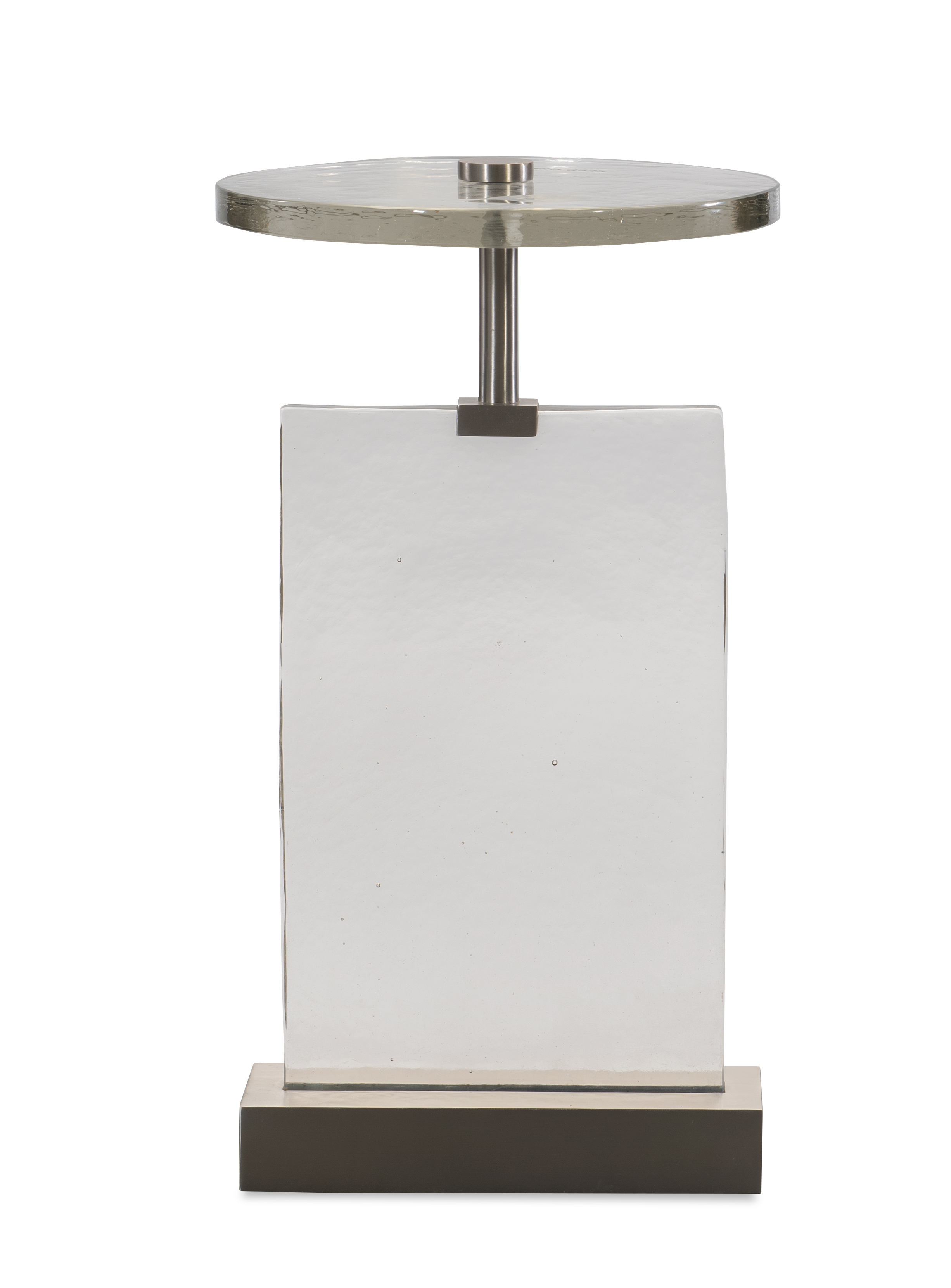 1-1.25” cast glass top and upright with brushed nickel finish metal support and base |