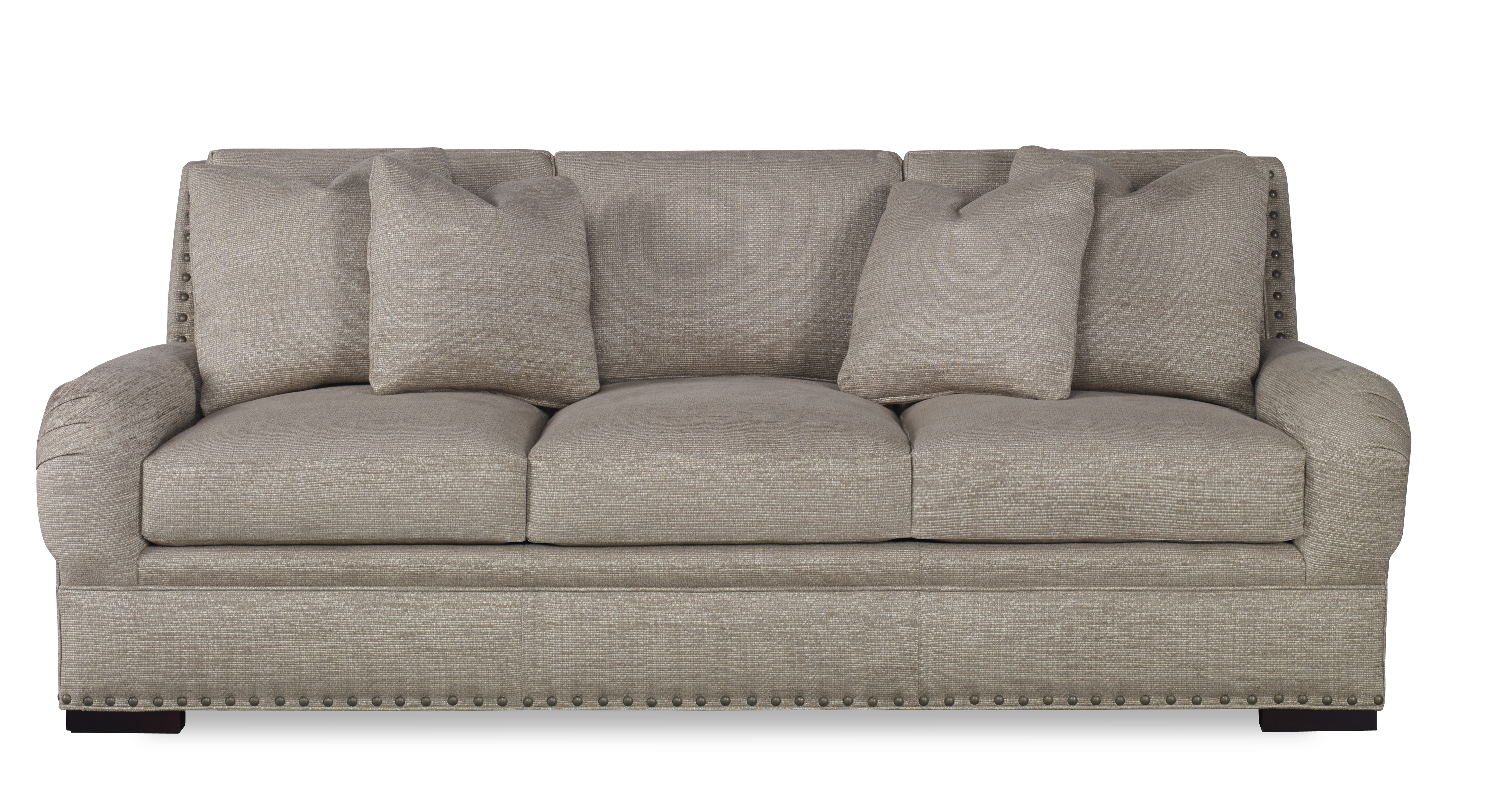 Our deep seated sofa is inspired by a Jean Michel Frank classic that we made softer with low over-scaled bridgewater arms and can be dressed-up with nail head trim.