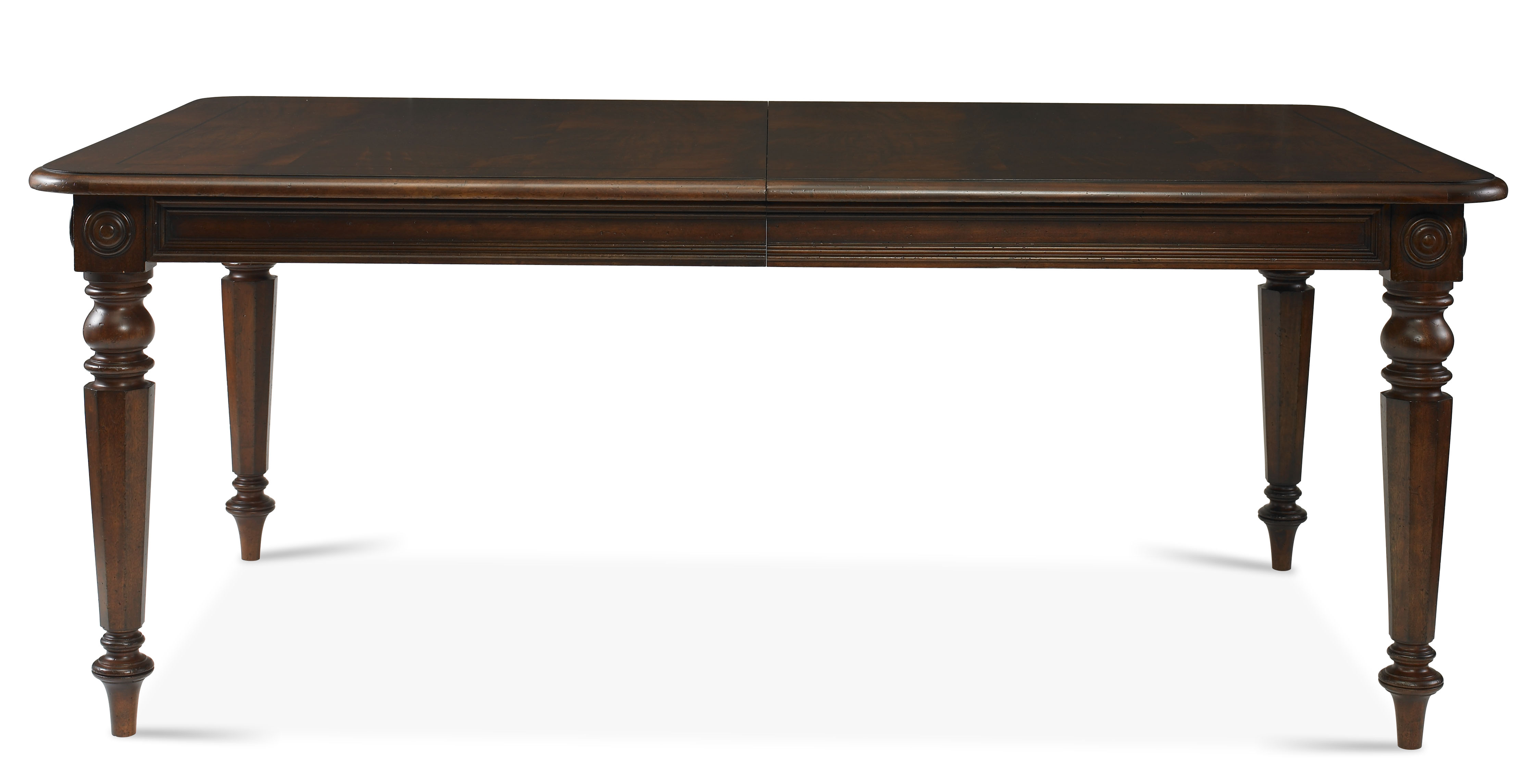 36H Cognac finish Maximum extension: 118" with two 21" aproned leaves |