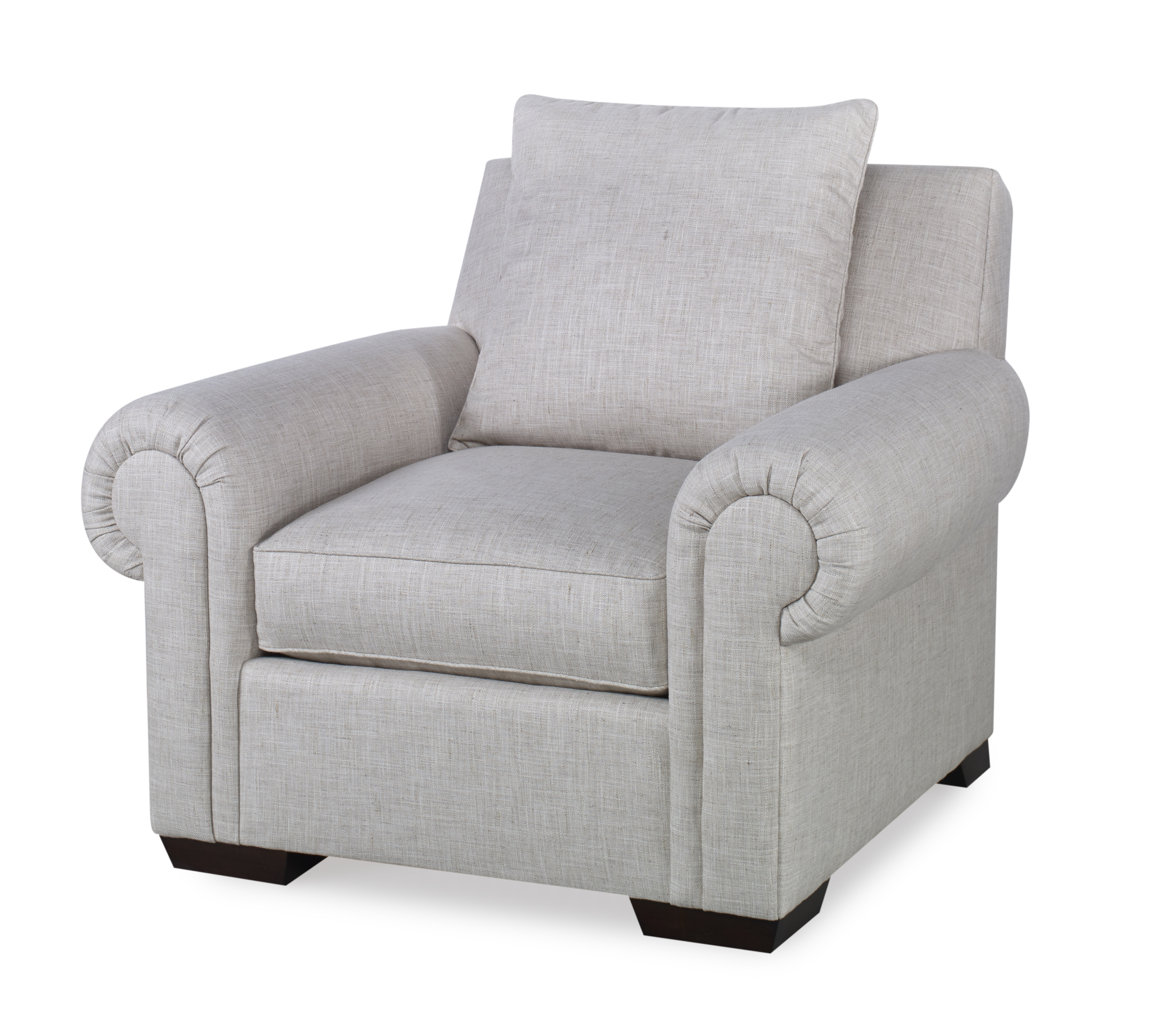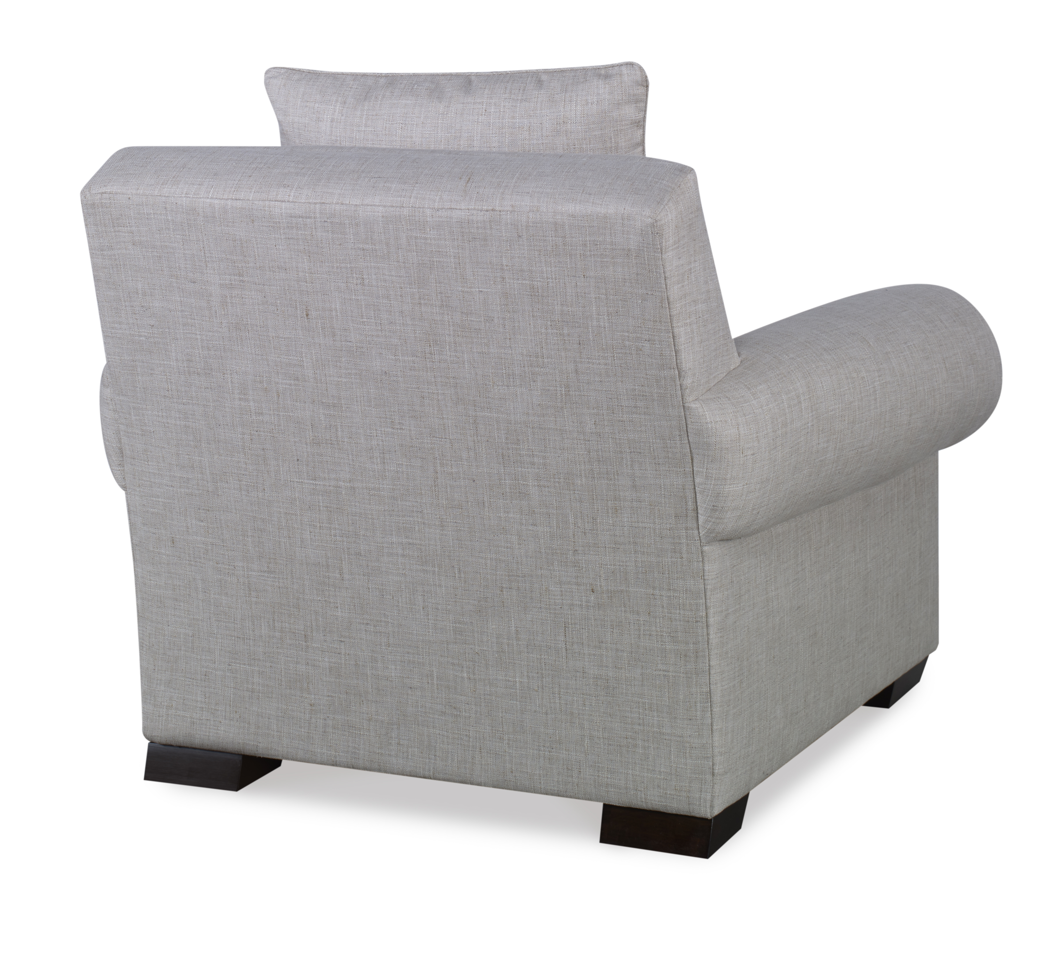 A classic rolled arm silhouette with a tight square back, made very, very large. This type of long-lined, stately and sumptuous sofa with such crisp tailoring reminds me of the grand old houses along the Hudson River and the iconic summer houses in the Hamptons. But it also has the newness to meet the size of an overscale room today that needs a big sofa or a wonderful, large pair of chairs.
