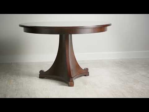 "The Dawning Pedestal Round Dining Table is designed to be a new but classic and versatile elegant modern centerpiece. It started with beautiful new classical pedestal table from Vienna. It has a beautiful traditional form and I imagined a quad pedestal and its tri form pedestal to be used individually as smaller tables. The base is actually simple and elegant in figured veneers. It has a look that feels familiar and at the same time very new." -Thomas O'Brien Crafted from Crown Mahogany veneers and mahogany solids. Available in any of Century's finishes.