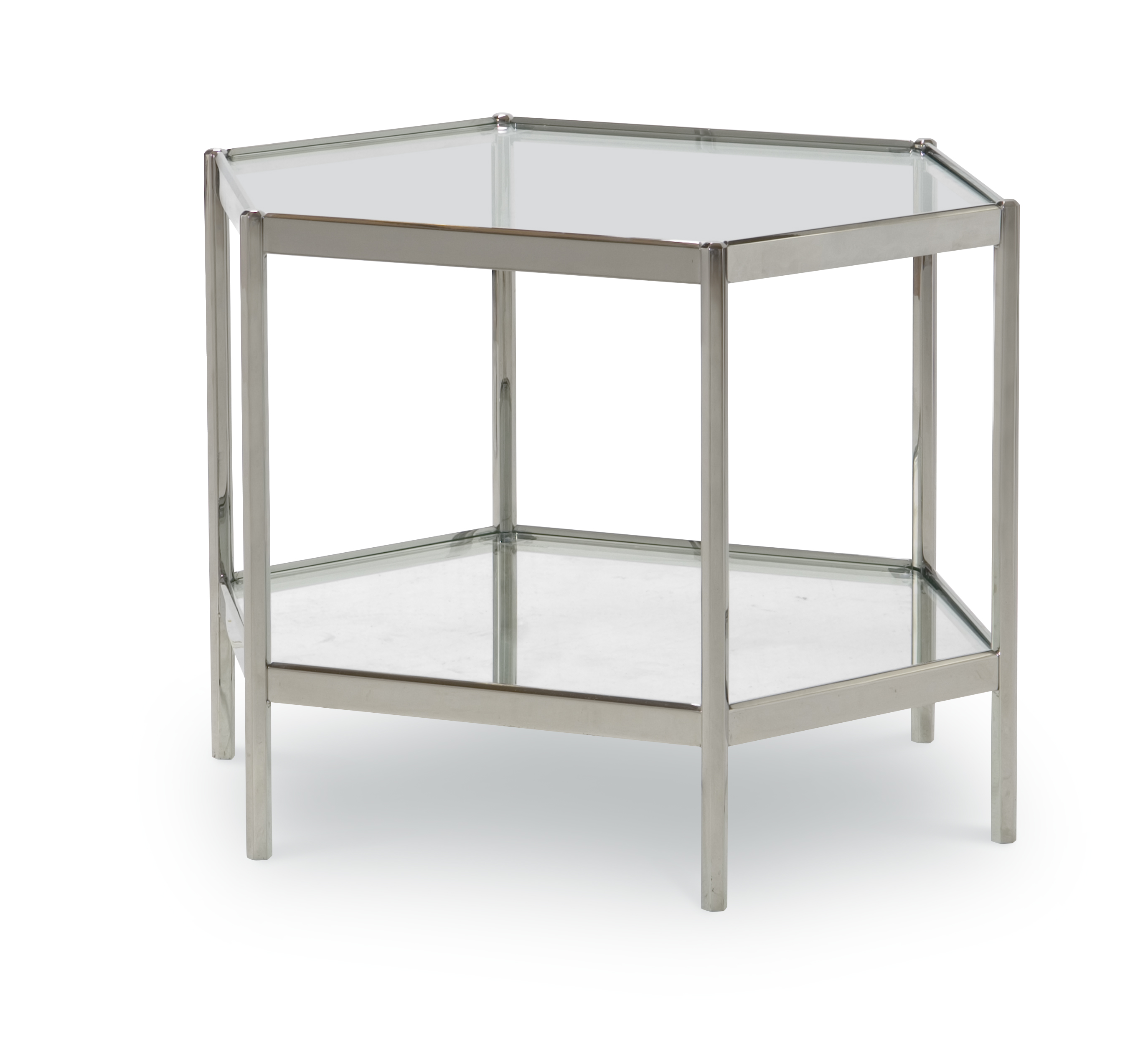 Polished Stainless Steel frame Tempered glass insert top and shelf |