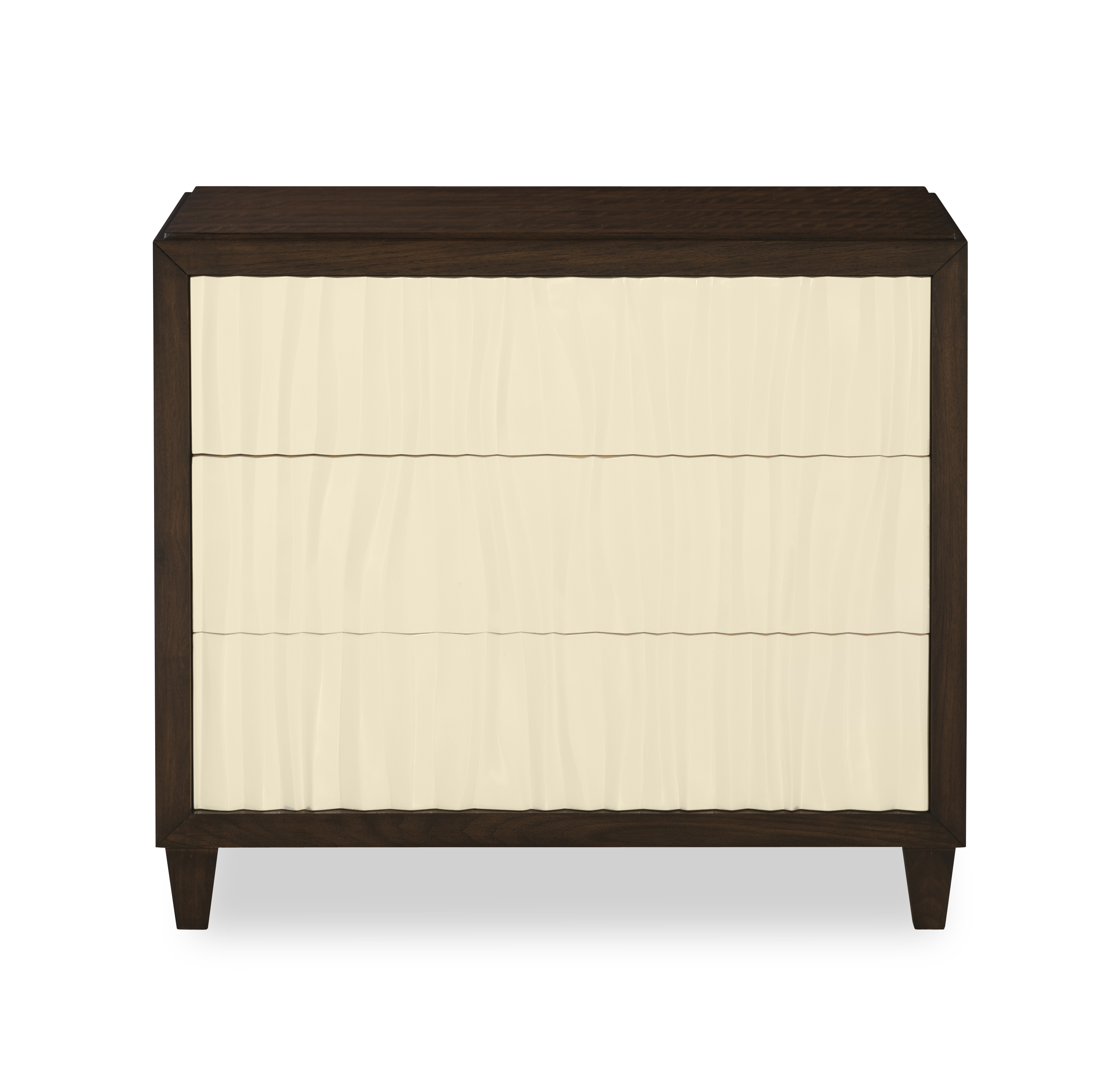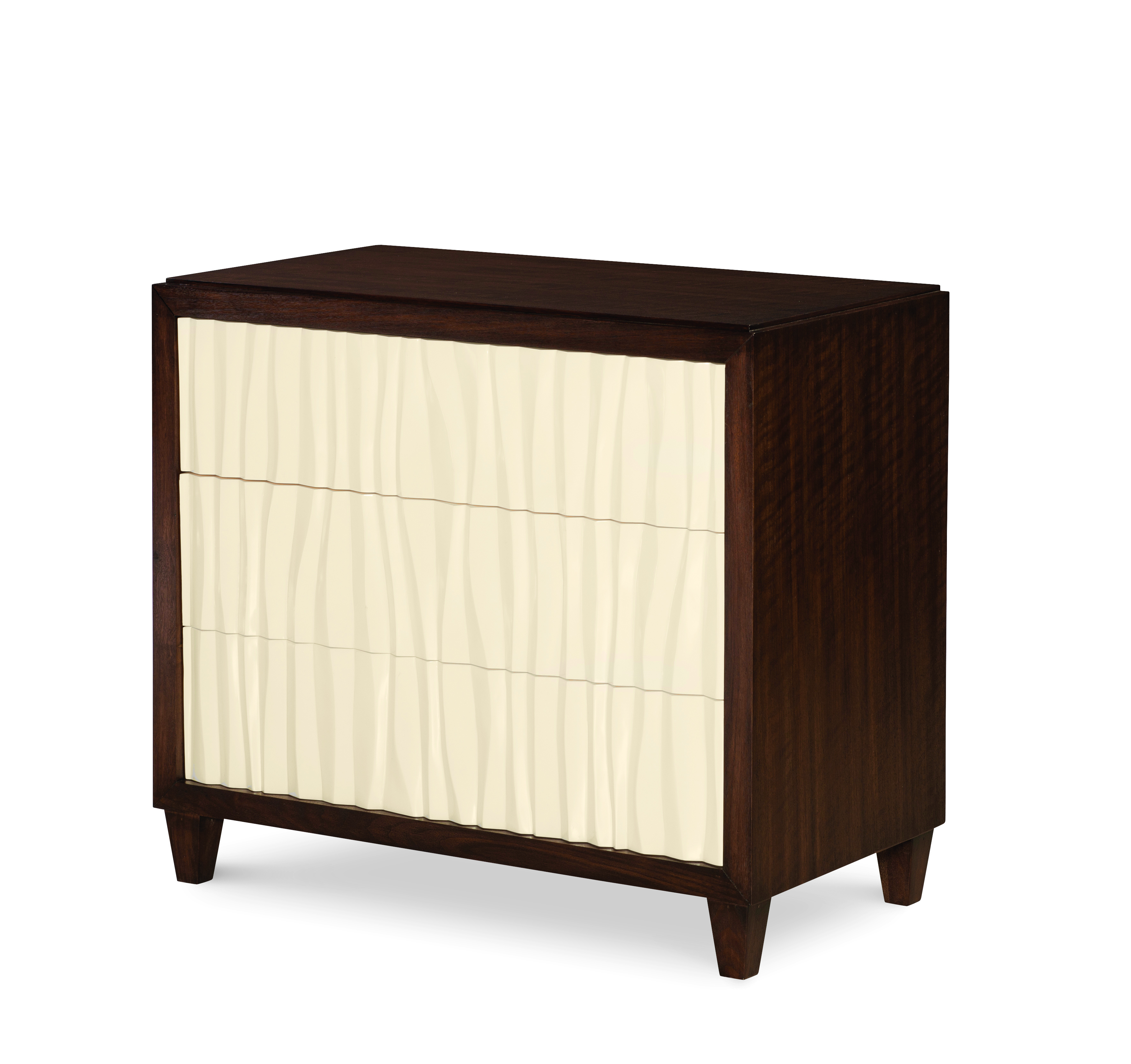 Available ONLY as shown: B1H Brunette finish with Cameo finish drawer fronts Three push-latch soft-close drawers with Cameo finish fiberglass fronts. USB outlet on back of case Tip restraint included |