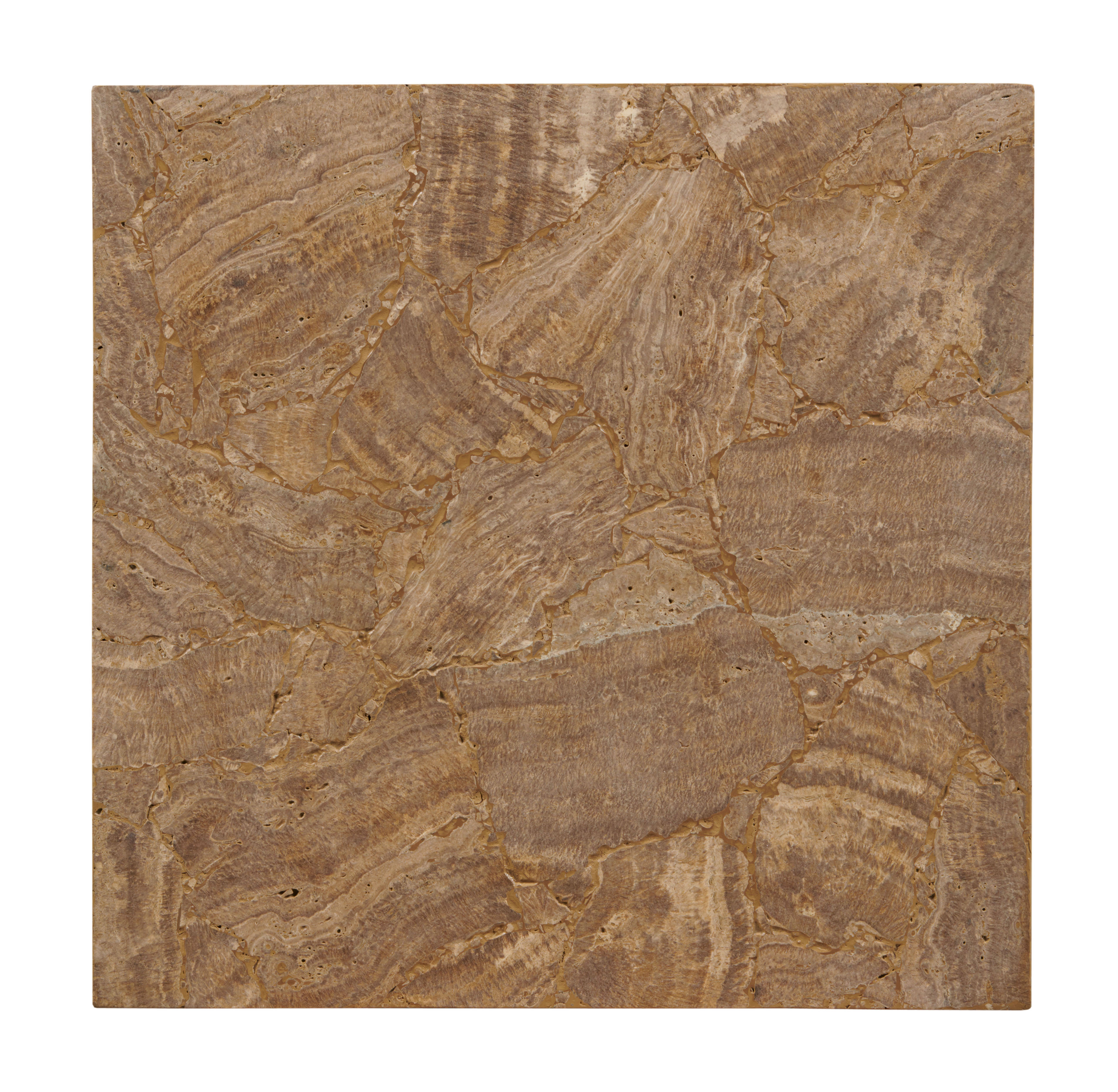 Fully wrapped in travertine veneer with a light, natural stained base. Designed by Pride Sasser |
