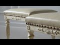 nailhead trim around the edge adds a refined accent. Its carved legs and decorative motifs make it a charming addition to any classic or vintage-inspired interior.