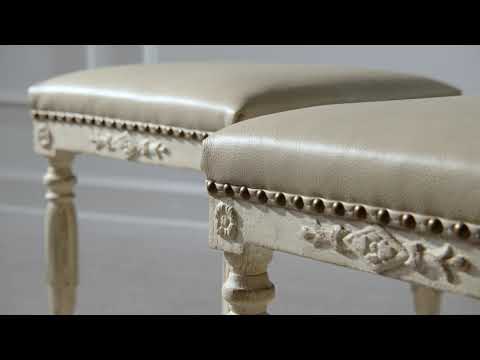 and a painted finish that highlights its neoclassical design influences. The stool is