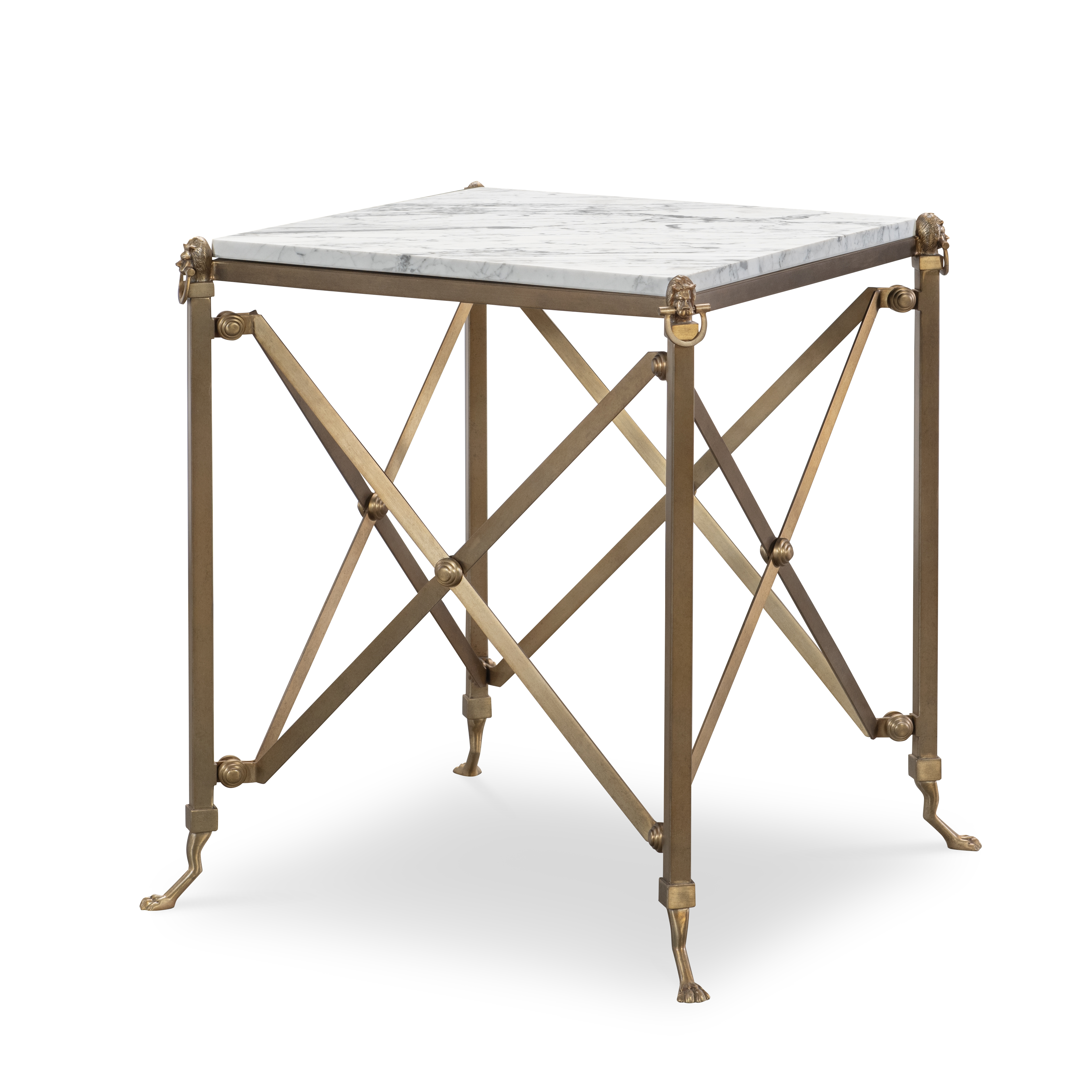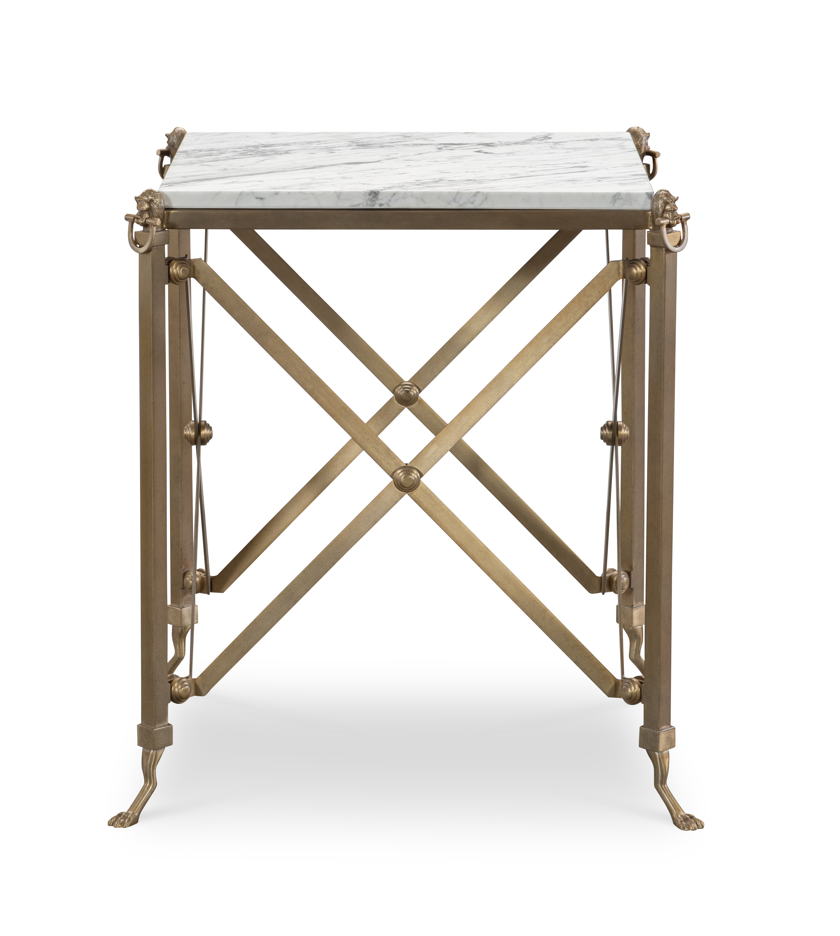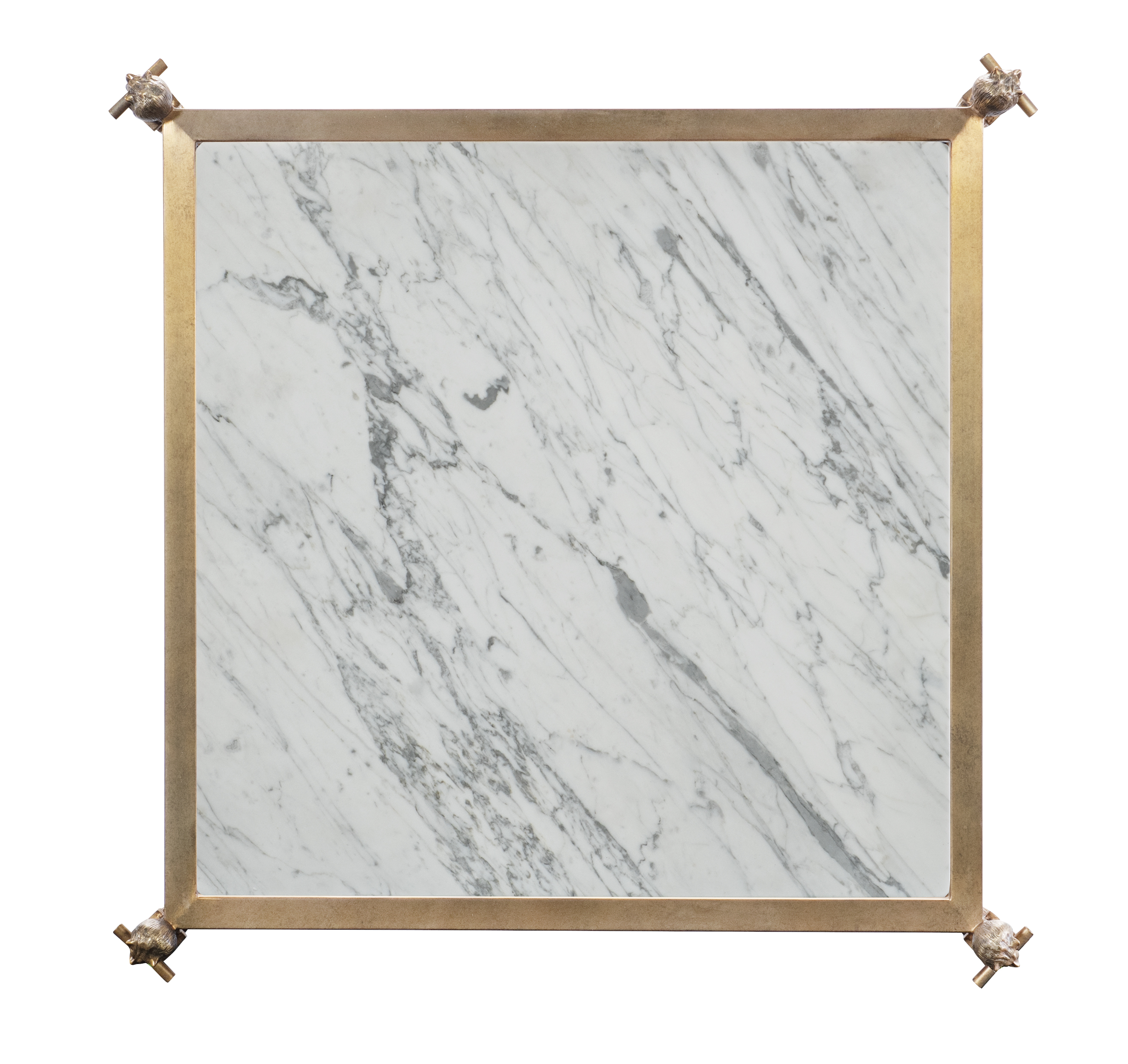 Honed Arabescato Fanniello marble top on Antique Brass metal base |